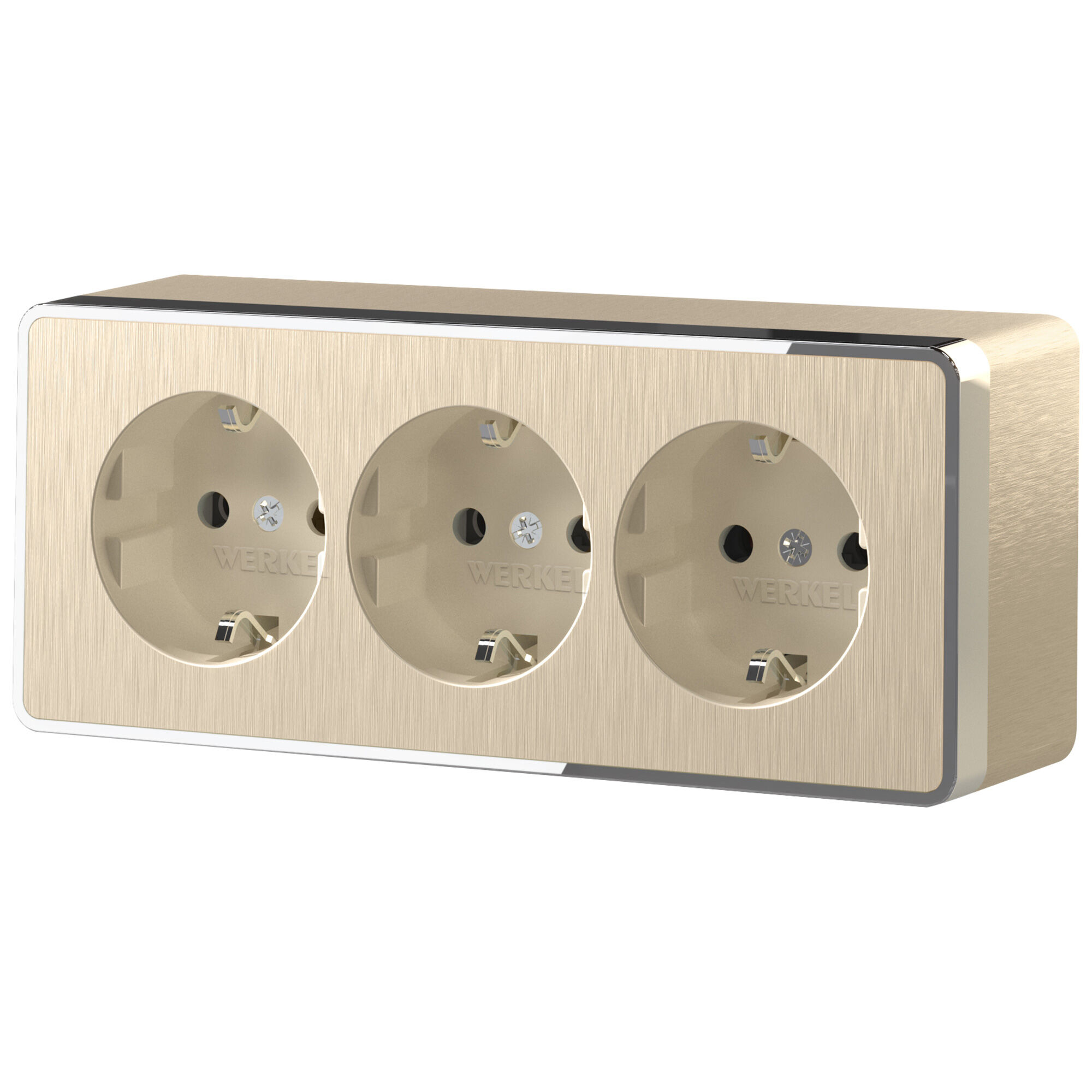 <p>Накладная тройная розетка с заземлением Gallant W5073110 250 В 16 A в цвете шампань рифленый предназначена для подключения сразу нескольких электрических приборов бытового назначения. Розетка используются в квартирах, частных домах, коммерческих помещениях и устанавливаются в наиболее удобных местах для комфортного использования.</p> <p>Механизм имеет удобное подключение проводов с сечением от 0.75 мм кв до 2.5 мм кв, осуществляемое с помощью винтовой клеммы. Корпус из ударопрочного поликарбоната устойчив к механическим повреждениям и обладает термостойкостью.</p> <p>Накладной механизм не требуют дополнительных работ по монтажу отверстий и его можно устанавливать на любые поверхности.</p> <p></p>