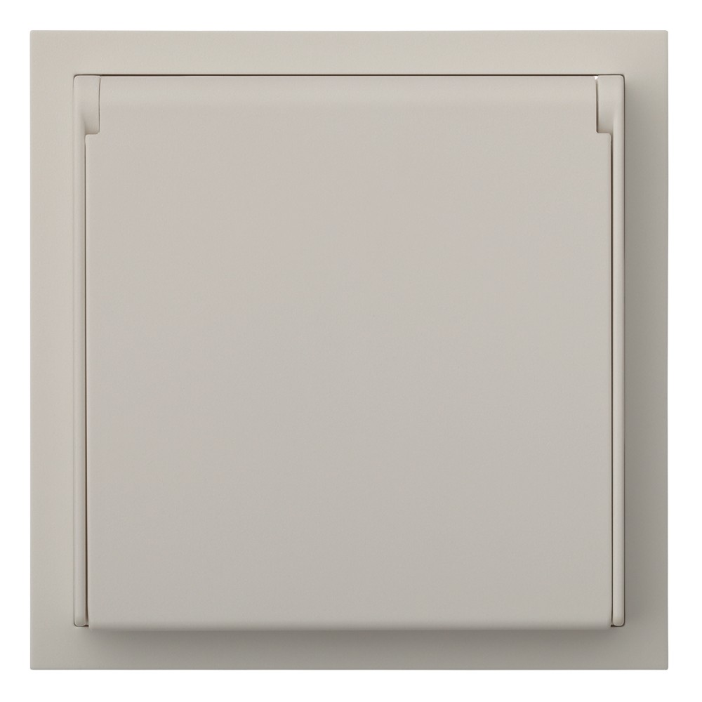 Влагозащищенная розетка IP44 с крышкой цвета лен в комплекте с лицевой панелью и рамкой. 250 В~ 16 А. Рамка и лицевая панель оснащены силиконовым уплотнителем, благодаря чему обеспечивается высокая степень защиты. Установка в многоместную рамку невозможна.
