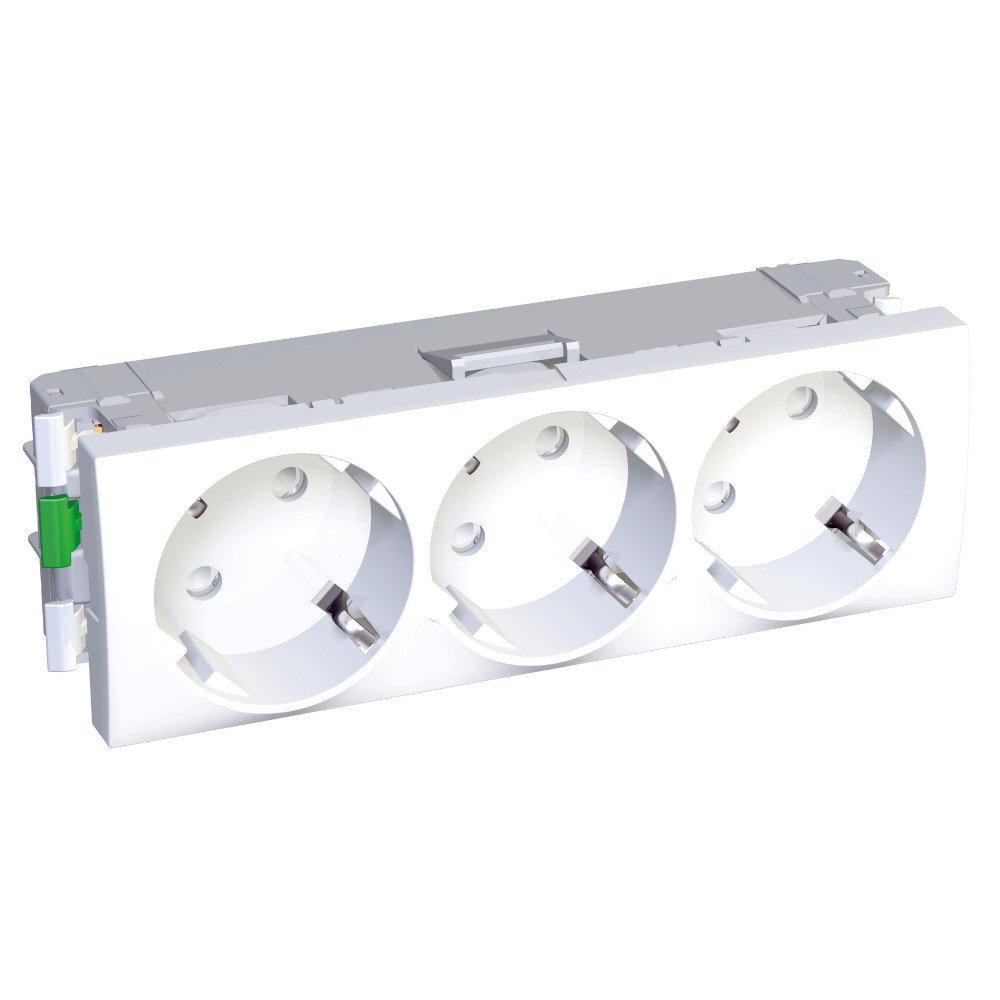 Розетка тройная Altira Schneider Electric (цвет белый RAL9003) с заземлением и шторками подходит для сетей 250 В, на ток 16 А.