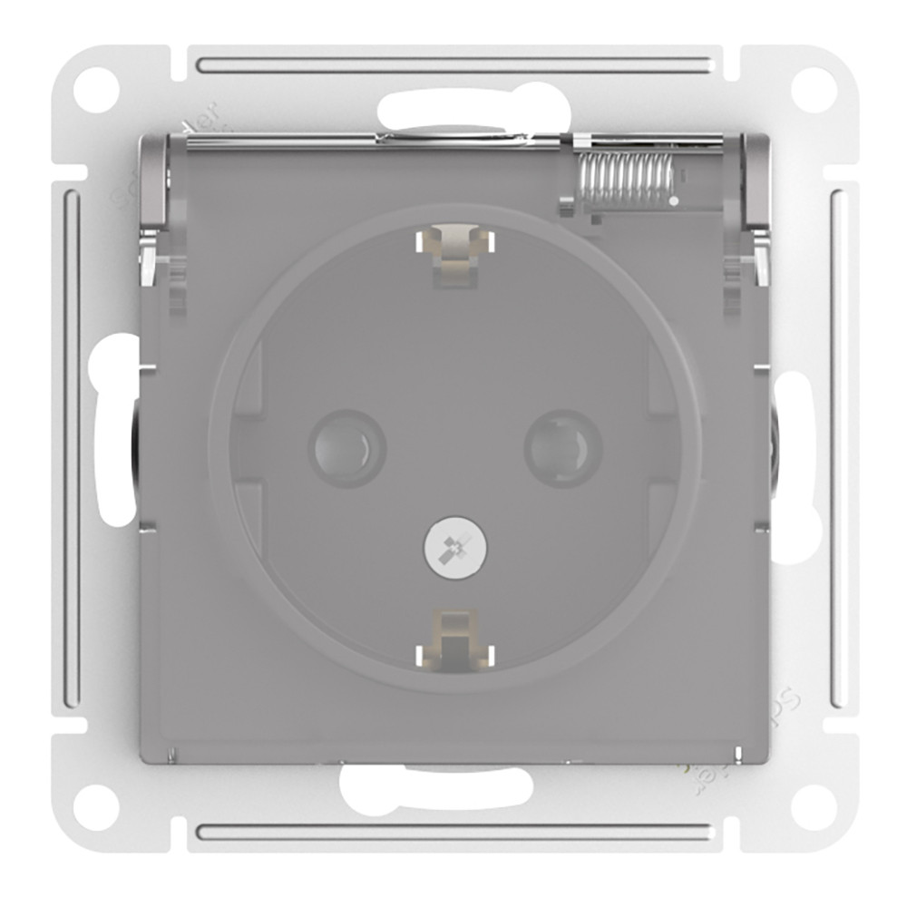 Механизм Systeme Electric (ранее Schneider Electric) серии AtlasDesign Aqua (цвет алюминий) розетки одинарной с заземлением, шторками и крышкой подходит для сетей 250 В, на ток 16 А.