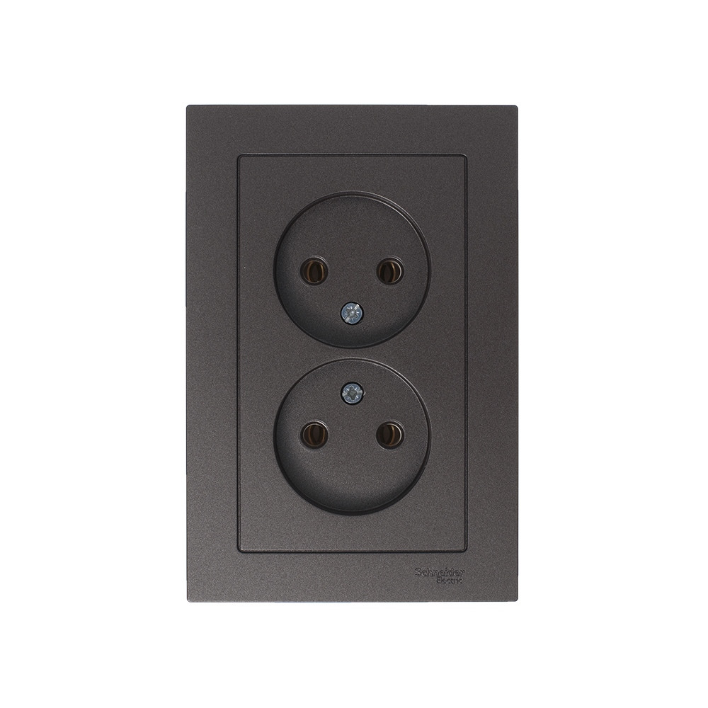 Розетка двойная Systeme Electric (ранее Schneider Electric) серии AtlasDesign (в сборе, цвет мокко) без заземления и без шторок подходит для сетей 250 В, на ток 16 А.