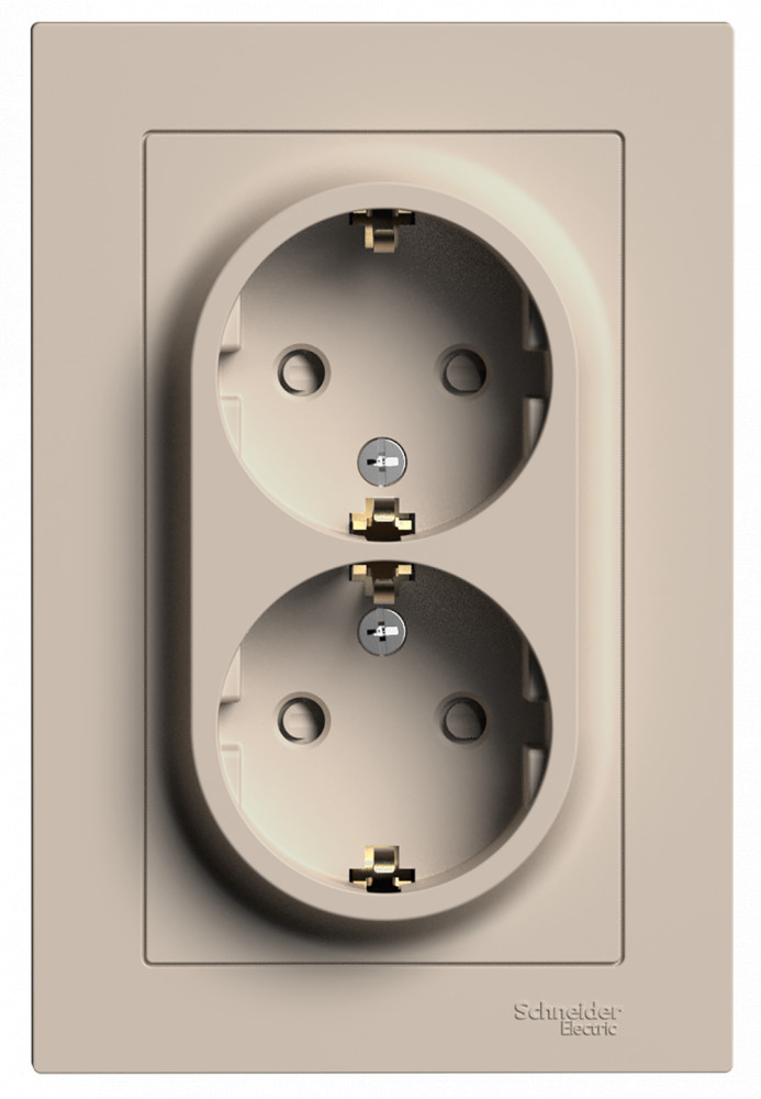 Розетка двойная Systeme Electric (ранее Schneider Electric) серии AtlasDesign (в сборе, цвет песочный) с заземлением и шторками подходит для сетей 250 В, на ток 16 А. Заземляющий контакт обеспечивает дополнительную защиту от удара электрическим током. Лицевые детали из качественного ABS-пластика, устойчивого к царапинам и УФ-излучению. Двойная розетка позволяет подключить два устройства в одном месте. Изделие поставляется в комплекте с рамкой того же цвета.