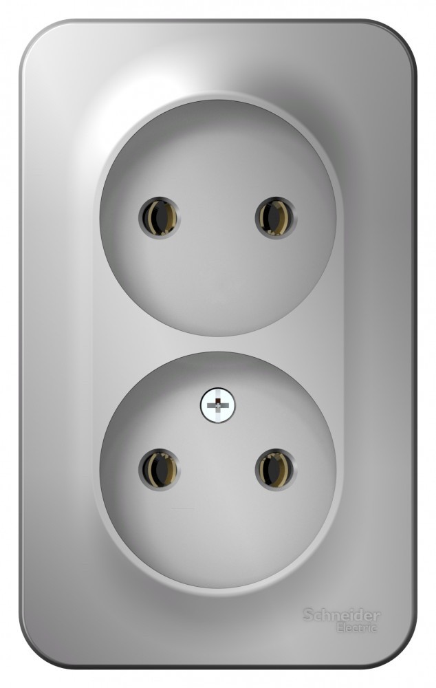 Розетка Systeme Electric (ранее Schneider Electric) BLANCA (алюминий, открытой установки) двухместная, без шторок и заземления, с изолирующей пластиной предназначена для сетей до 250В, на ток до 16А. Двухместная розетка позволяет подключить два устройства в одном месте. Она изготовлена из ABS-пластика, проста в установке и удобна в применении.
