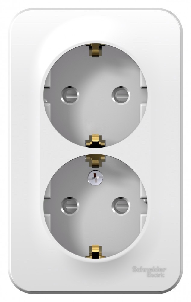 Розетка Systeme Electric (ранее Schneider Electric) BLANCA (белый, открытой установки) двухместная, с заземлением, шторками и монтажной пластиной предназначена для сетей до 250В, на ток до 16А. Двухместная розетка позволяет подключить два устройства в одном месте. Шторки и заземление обеспечивают дополнительную безопасность при косвенном прикосновении.