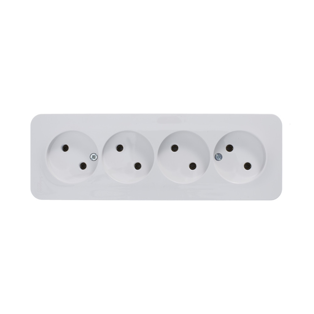 Розетка Systeme Electric (ранее Schneider Electric) BLANCA (белый, открытой установки) четырехместная, без шторок и заземления, с изолирующей пластиной предназначена для сетей до 250В, на ток до 16А. четырехместная розетка позволяет подключить четыре устройства в одном месте. Она изготовлена из ABS-пластика, проста в установке и удобна в применении.