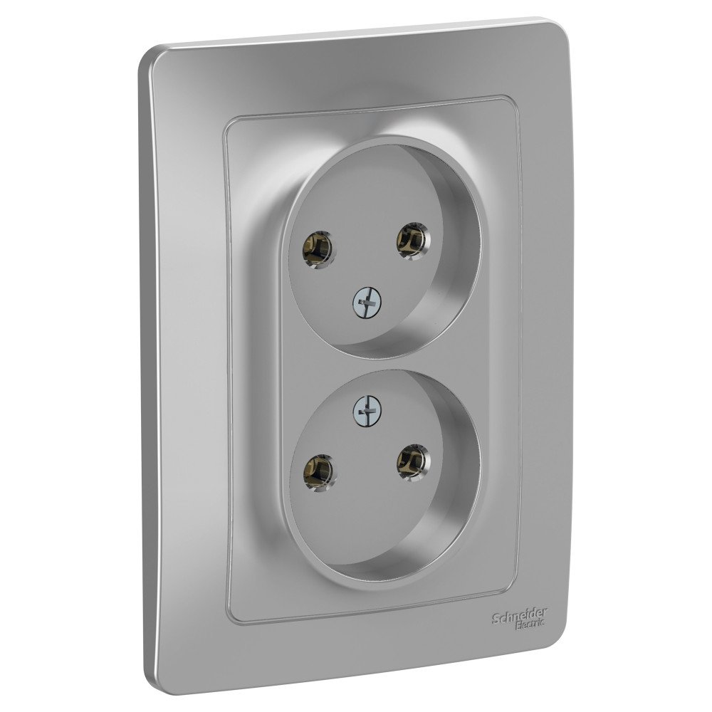 Розетка Systeme Electric (ранее Schneider Electric) BLANCA (алюминий, скрытой установки) двухместная, без заземления и шторок предназначена для сетей до 250В, на ток до 16А. Двухместная розетка позволяет подключить два устройства в одном месте. Она изготовлена из ABS-пластика, проста в установке и удобна в применении.