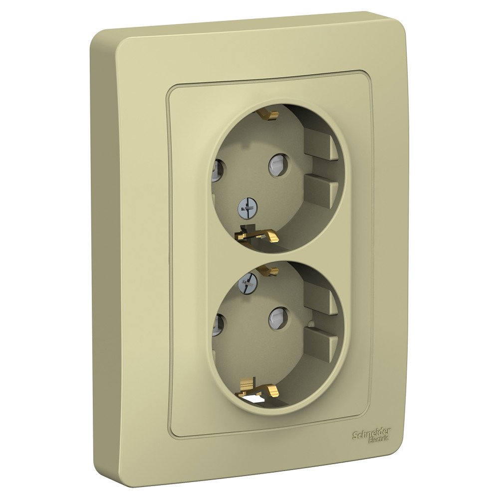 Розетка Systeme Electric (ранее Schneider Electric) BLANCA (скрытой установки, цвет бежевый) двухместная с заземлением и шторками, с изолирующей пластиной подходит для сетей 250 В, на ток 16 А.