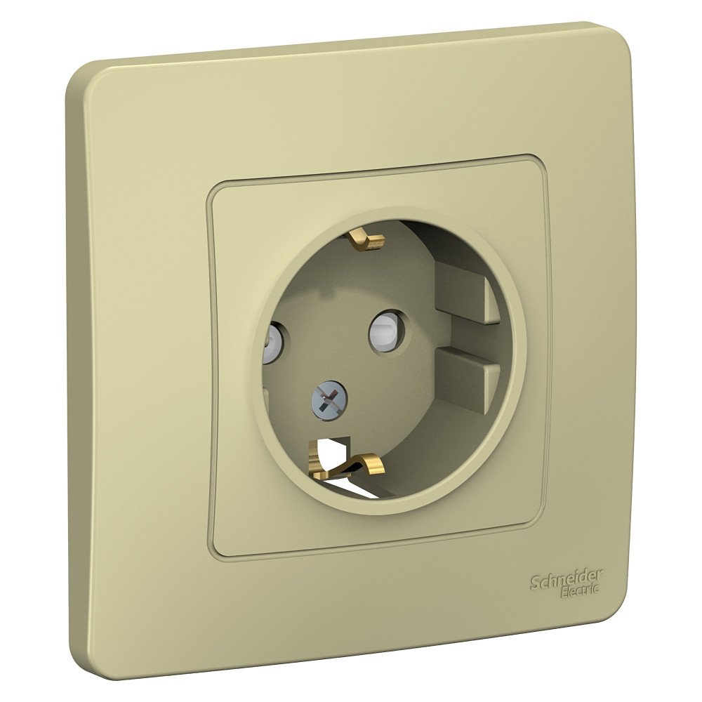 Розетка Systeme Electric (ранее Schneider Electric) BLANCA (скрытой установки, цвет бежевый) одноместная с заземлением и шторками, с изолирующей пластиной подходит для сетей 250 В, на ток 16 А.