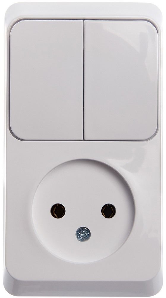 Блок Systeme Electric (ранее Schneider Electric) ЭТЮД (белый, открытой установки) предназначен для применения в сетях до 250В, состоит из розетки на 16А, со шторками, без заземления и двухклавишного выключателя на 10А. Две клавиши позволяют управлять двумя источниками света с одной точки. Он удобен в применении и отлично подходит для коридора. Сделано в России.