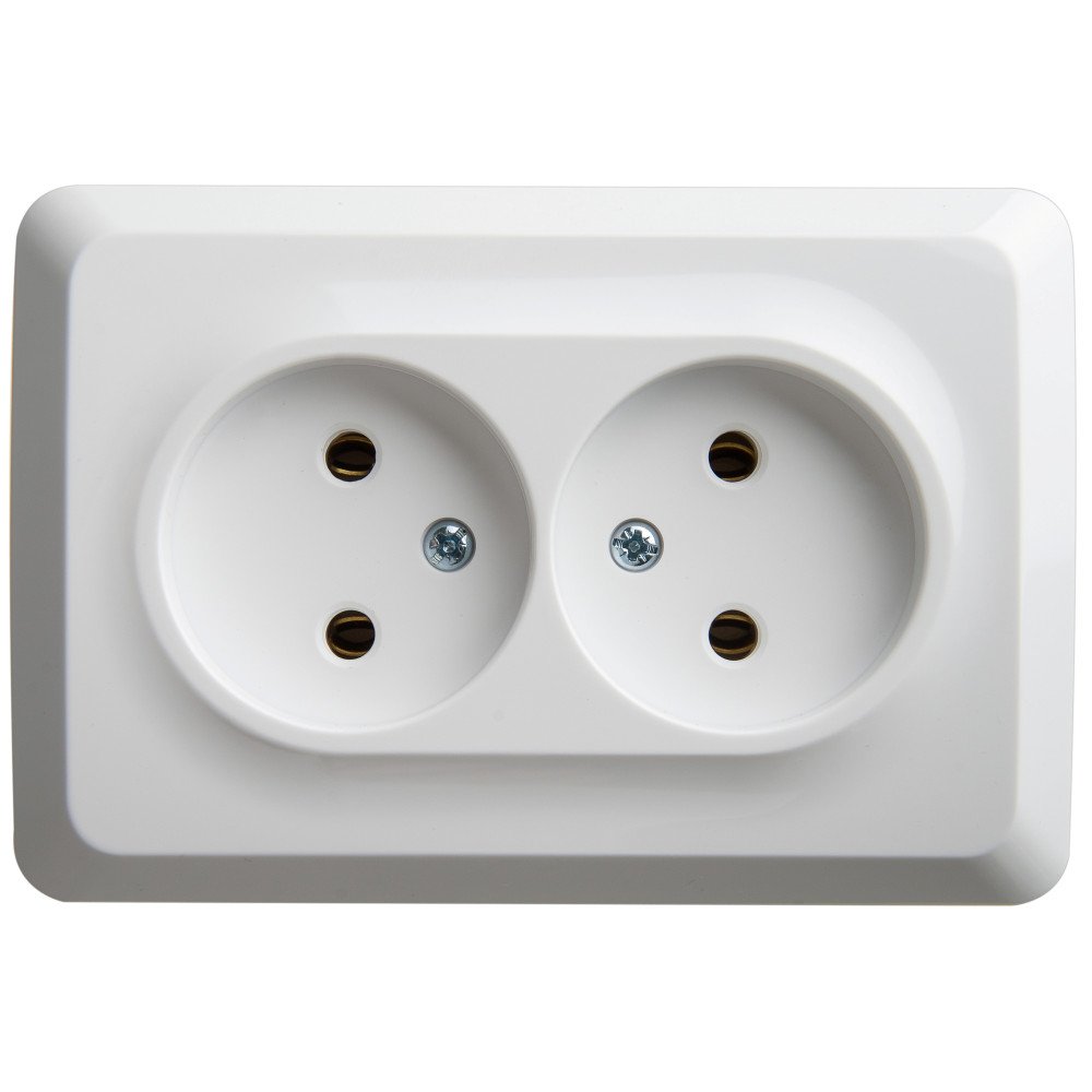 Розетка Systeme Electric (ранее Schneider Electric) ЭТЮД (белый, открытой установки) двухместная угловая, без шторок и заземления предназначена для применения в сетях до 250В, на ток до 16А. Двухместная розетка позволяет подключить два устройства в одном месте. Ее конструкция позволяет установить розетку в угол помещения. Сделано в России.