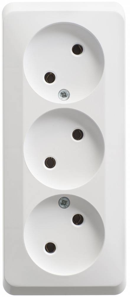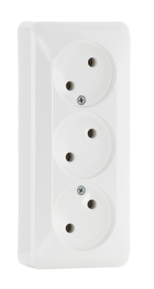 Розетка Systeme Electric (ранее Schneider Electric) ЭТЮД (белый, открытой установки) трёхместная, без шторок и заземления предназначена для применения в сетях до 250В, на ток до 16А. Трёхместная розетка позволяет подключить три устройства в одном месте. Она проста в установке и удобна в применении. Сделано в России.