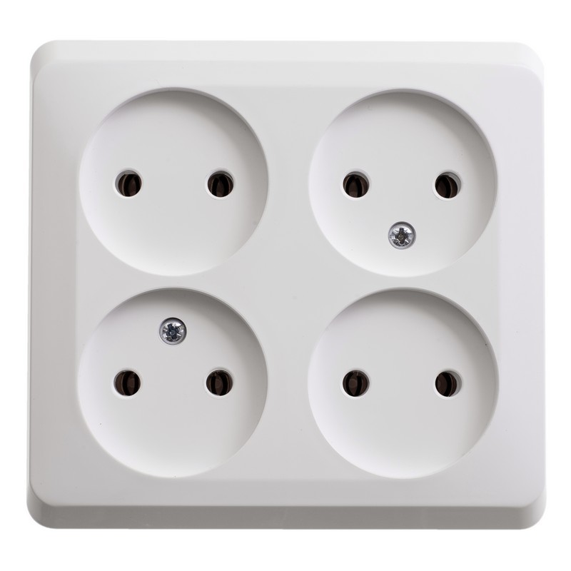 Розетка Systeme Electric (ранее Schneider Electric) ЭТЮД (белый, открытой установки) четырёхместная, без шторок и заземления предназначена для применения в сетях до 250В, на ток до 16А. Четырёхместная розетка позволяет подключить четыре устройства в одном месте. Она проста в установке и удобна в применении. Сделано в России.