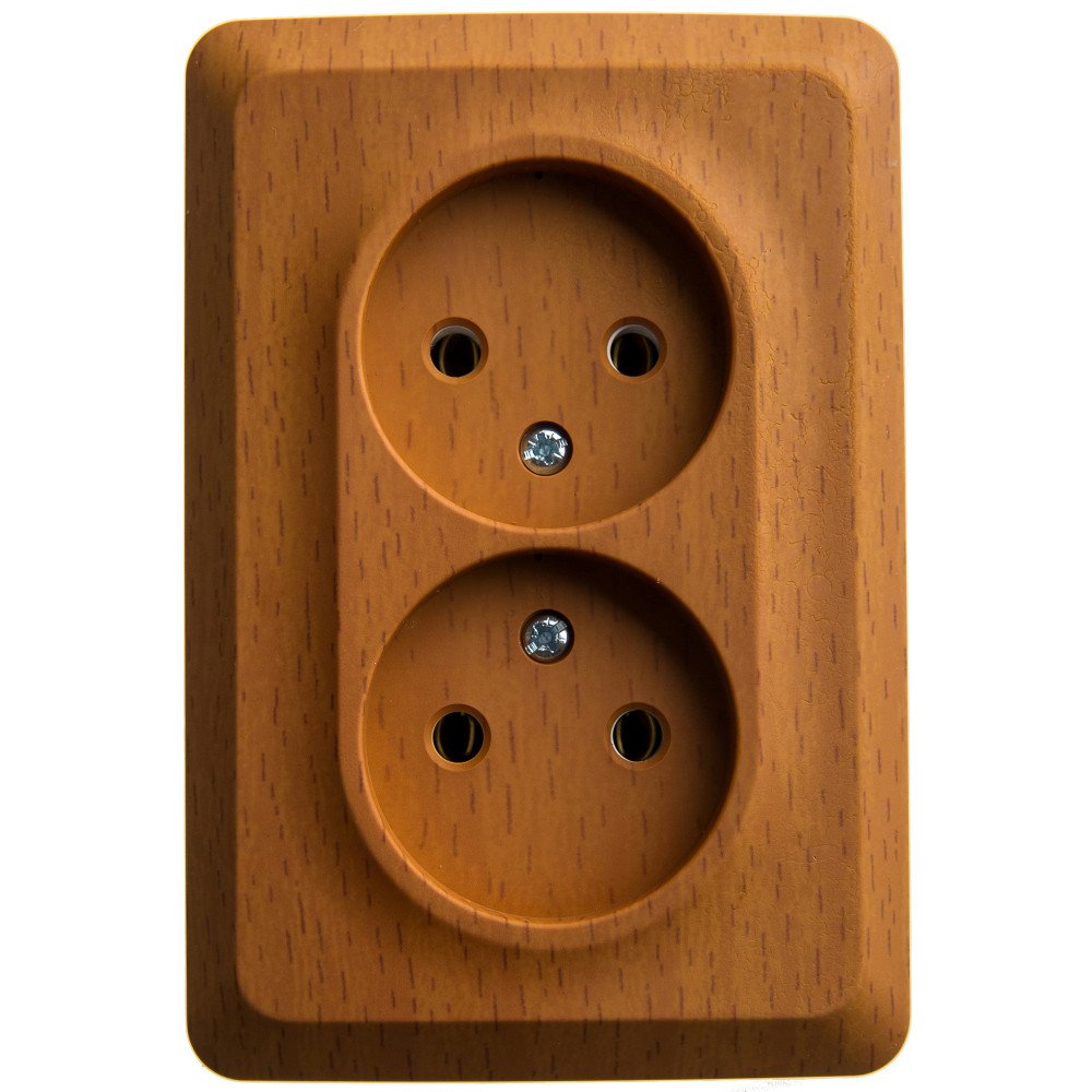 Розетка Systeme Electric (ранее Schneider Electric) ЭТЮД (бук, открытой установки) двухместная угловая, без шторок и заземления предназначена для применения в сетях до 250В, на ток до 16А. Двухместная розетка позволяет подключить два устройства в одном месте. Ее конструкция позволяет установить розетку в угол помещения. Изделия цвета Бук обладают уникальным рисунком, напоминающим древесный сруб. Сделано в России.