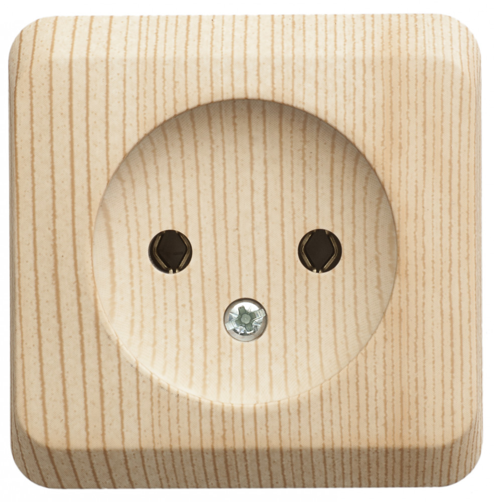 Розетка Systeme Electric (ранее Schneider Electric) ЭТЮД (сосна, открытой установки) одноместная предназначена для применения в сетях до 250В, на ток до 16А, без шторок и заземления. Она проста в установке и удобна в применении, идеально подходит для загородного дома. Изделия цвета Сосна обладают уникальным рисунком, напоминающим древесный сруб. Сделано в России.