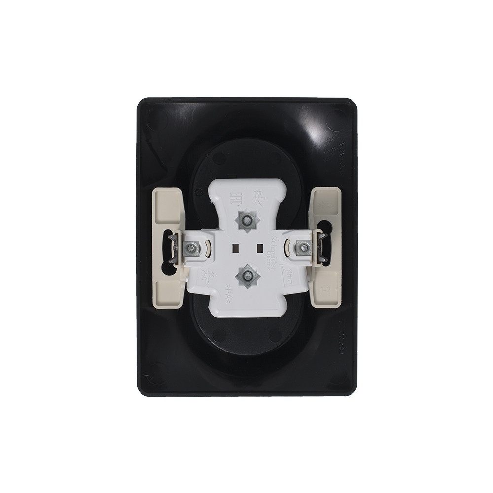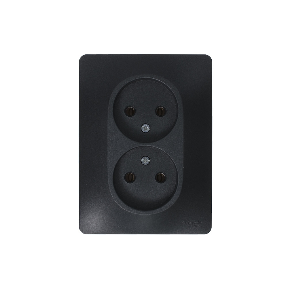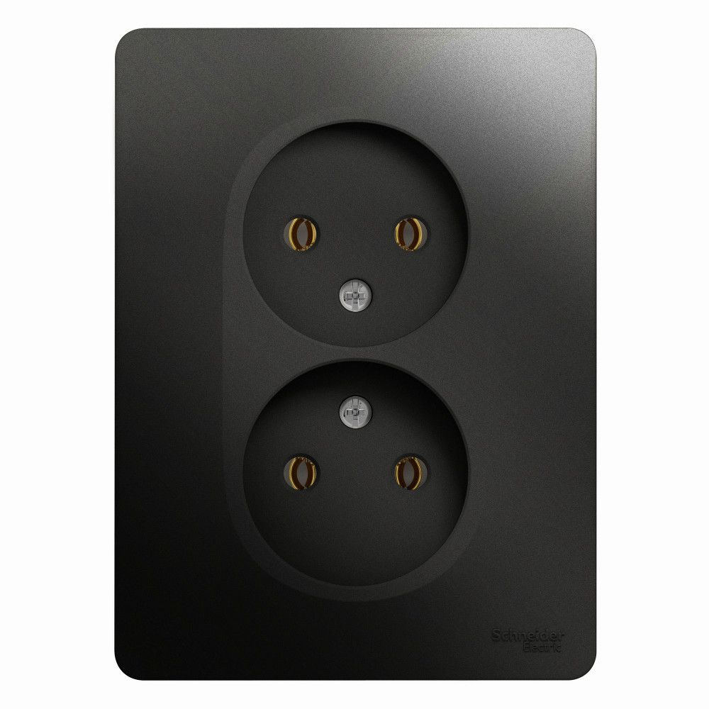 Розетка двойная Systeme Electric (ранее Schneider Electric) серии Glossa (в сборе, цвет антрацит) без заземления и без шторок подходит для сетей 250 В, на ток 16 А.