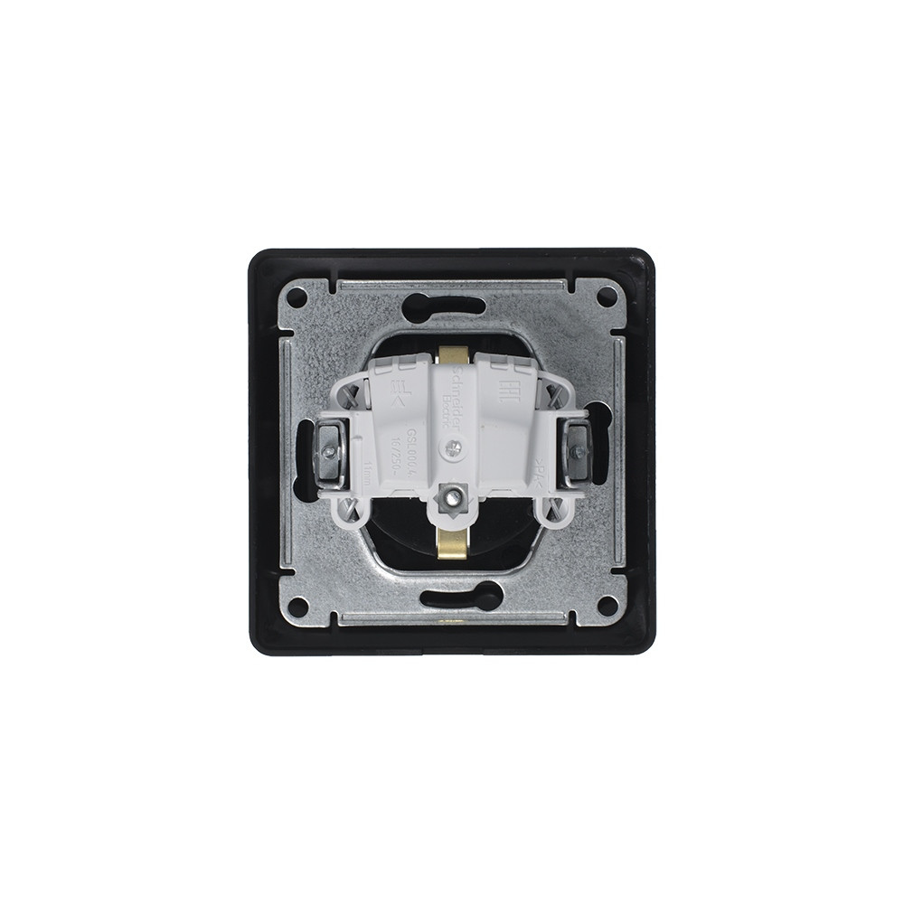 Розетка Systeme Electric (ранее Schneider Electric) серии Glossa (в сборе, цвет антрацит) одинарная с заземлением, шторками и крышкой подходит для сетей 250 В, на ток 16 А.