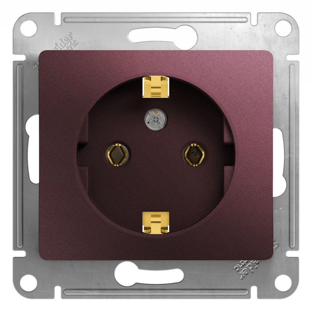 Механизм Schneider Electric Glossa (цвет баклажановый) розетки одинарной с заземлением и без шторок подходит для сетей 250 В, на ток 16 А.