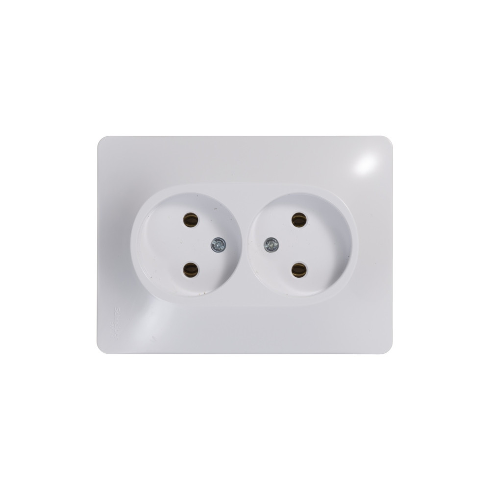 Розетка двойная Systeme Electric (ранее Schneider Electric) серии Glossa (в сборе, цвет белый) без заземления и без шторок подходит для сетей 250 В, на ток 16 А.