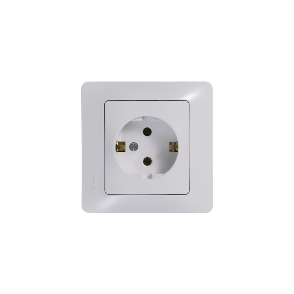 Механизм Systeme Electric (ранее Schneider Electric) серии Glossa (цвет белый) розетки одинарной с заземлением и без шторок подходит для сетей 250 В, на ток 16 А.