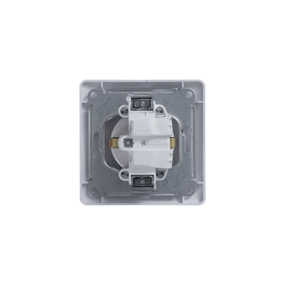 Розетка Systeme Electric (ранее Schneider Electric) серии Glossa (в сборе, цвет белый) одинарная с заземлением и без шторок подходит для сетей 250 В, на ток 16 А.