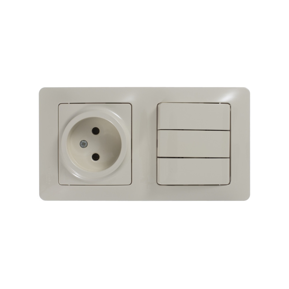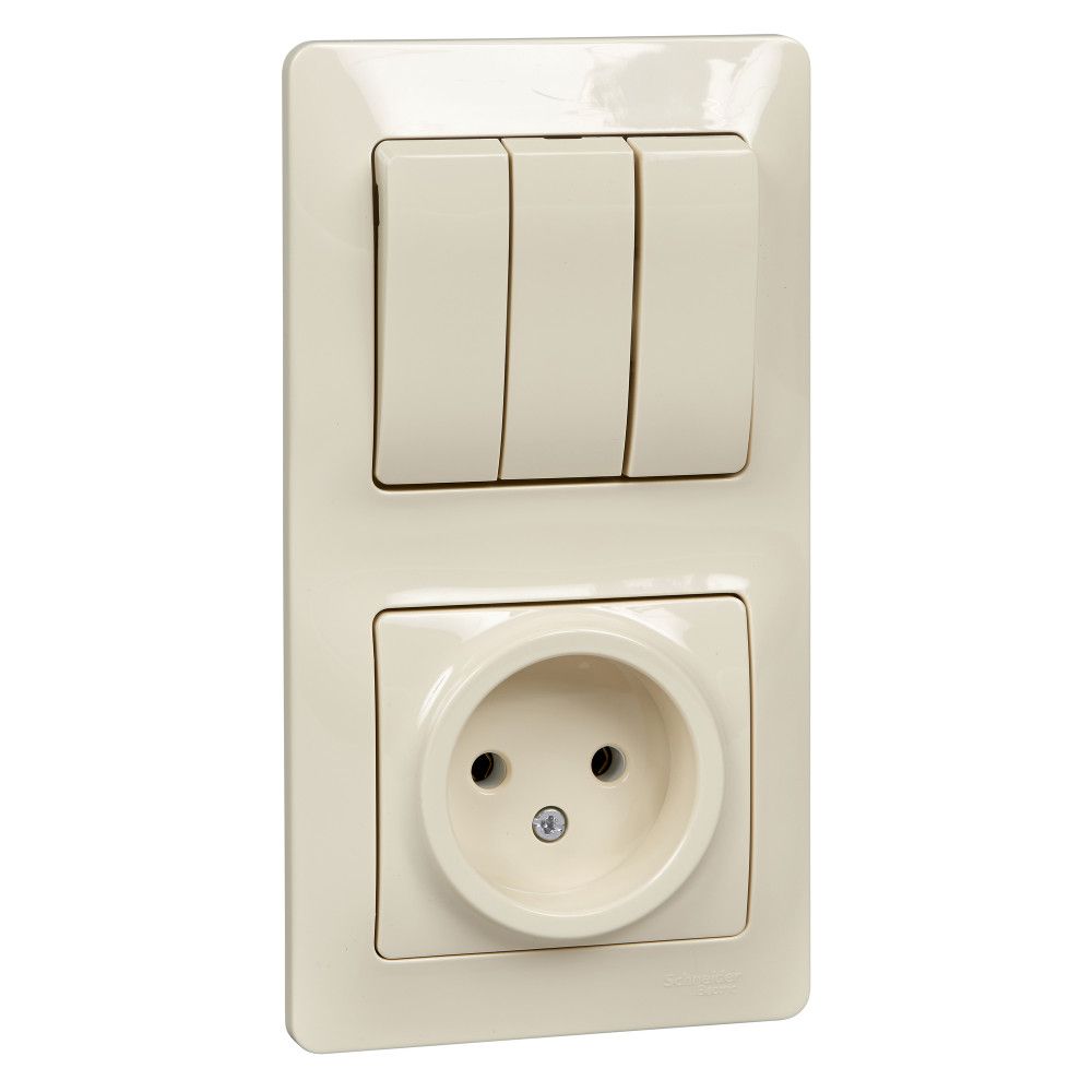 Блок комбинированный Systeme Electric (ранее Schneider Electric) серии Glossa (в сборе, цвет бежевый) предназначен для сетей до 250 В, состоит из розетки на 16 А и 3-клавишного выключателя на 10 А.