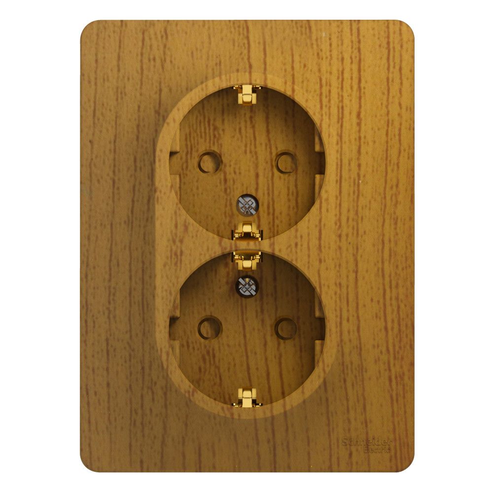 Розетка двойная Systeme Electric (ранее Schneider Electric) серии Glossa (в сборе, цвет дерево дуб) с заземлением и шторками подходит для сетей 250 В, на ток 16 А.