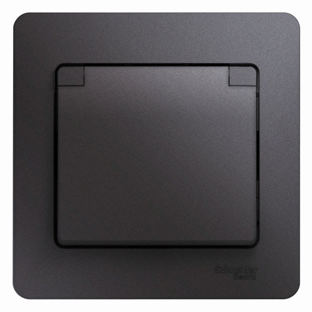 Розетка Systeme Electric (ранее Schneider Electric) серии Glossa (в сборе, цвет графит) одинарная с заземлением, шторками и крышкой подходит для сетей 250 В, на ток 16 А.