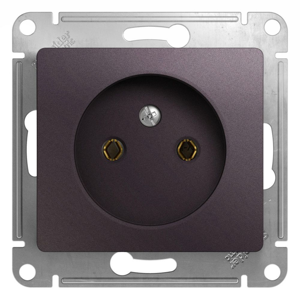 Механизм Schneider Electric Glossa (цвет сиреневый туман) розетки одинарной без заземления и без шторок подходит для сетей 250 В, на ток 16 А.