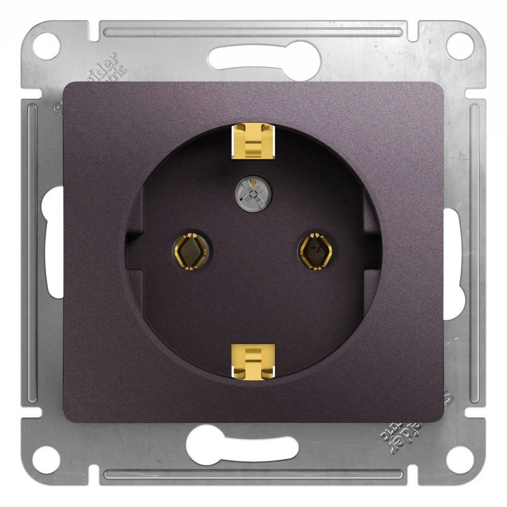 Механизм Schneider Electric Glossa (цвет сиреневый туман) розетки одинарной с заземлением и без шторок подходит для сетей 250 В, на ток 16 А.
