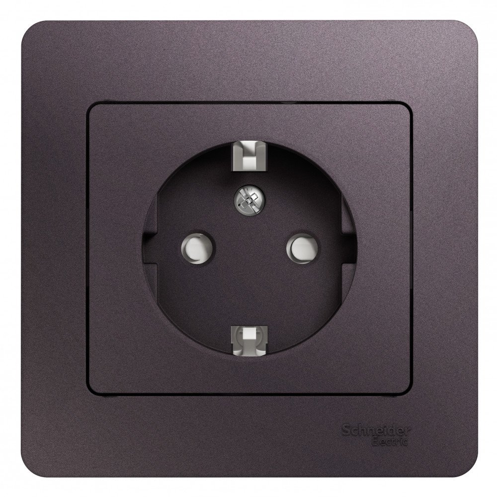 Розетка Schneider Electric Glossa (в сборе, цвет сиреневый туман) одинарная с заземлением и без шторок подходит для сетей 250 В, на ток 16 А.