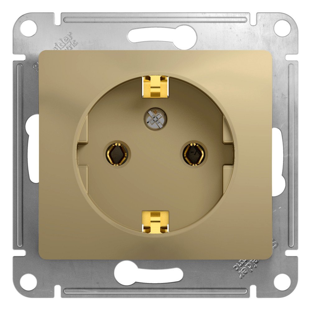 Механизм Systeme Electric (ранее Schneider Electric) серии Glossa (цвет титан) розетки одинарной с заземлением и без шторок подходит для сетей 250 В, на ток 16 А.