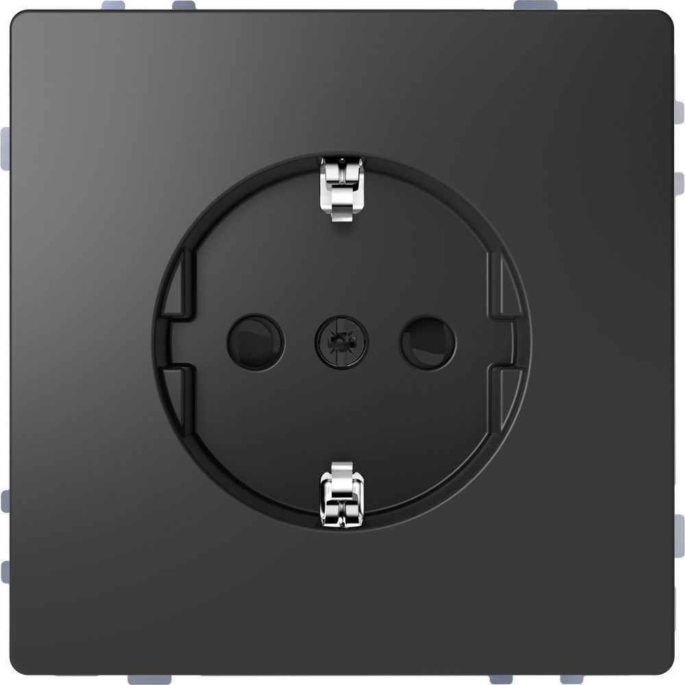 Розетка Schneider Electric Merten серии D-Life QuickFlex SCHUKO (антрацит, скрытая установка) с безвинтовыми зажимами, одинарная с заземлением и шторками предназначена для применения в сетях до 250В, на ток до 16А. Шторки обеспечивают дополнительную безопасность в доме, где находятся дети.