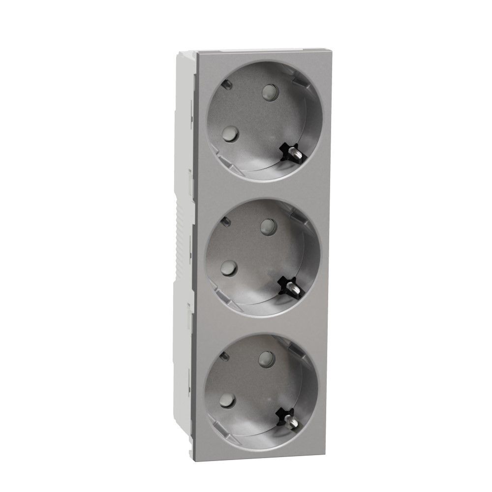 SE Unica Modular Розетка 3х(2К+З) 45гр, шторки, безвинтовые клеммы АЛЮМИНИЙ от производителя Schneider Electric. Артикул производителя NU307630.