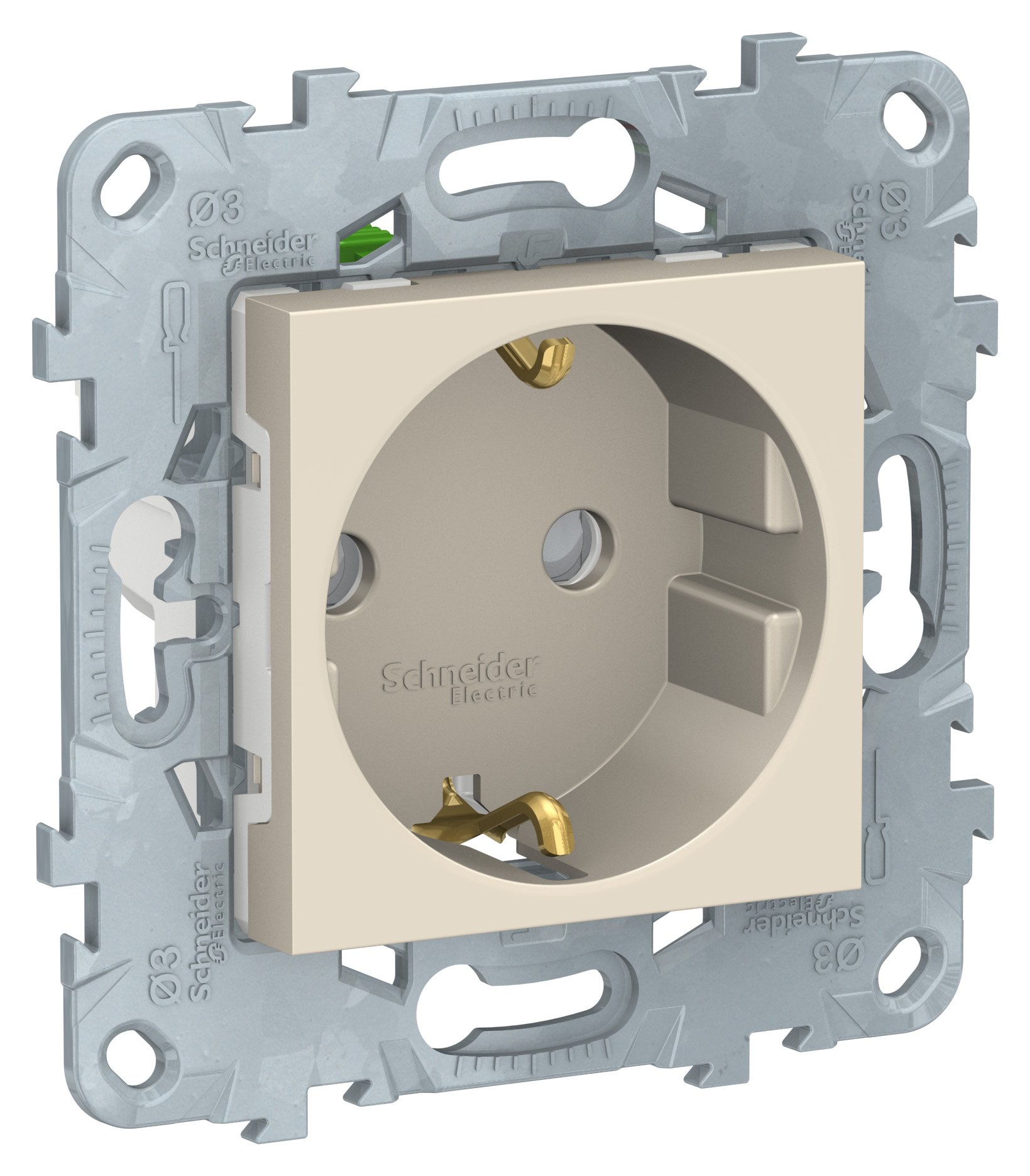 Розетка Schneider Electric UNICA NEW (бежевый) с заземлением, со шторками, с быстрозажимными клеммами предназначена для сетей до 250 В на ток до 16 А.