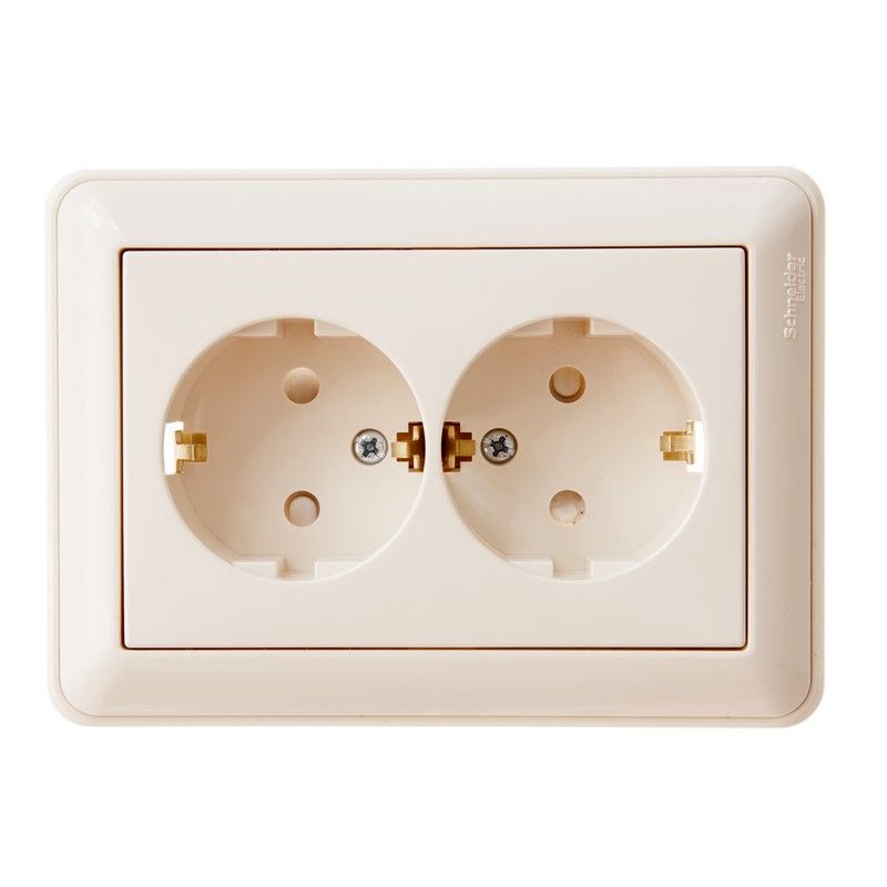 Розетка Systeme Electric (ранее Schneider Electric) W59 (в сборе, цвет слоновая кость) двойнаяс заземлением и шторками подходит для сетей 250 В, на ток 16 А.