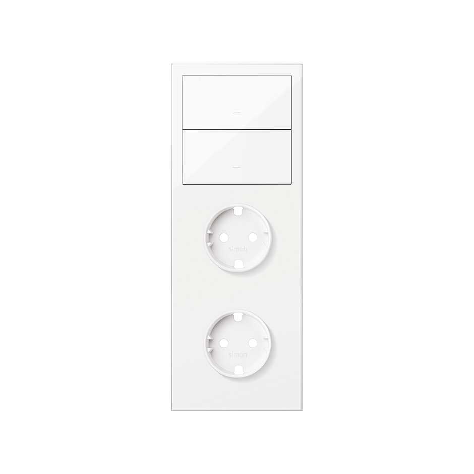 Simon 100 Белый глянец Кит 3 поста, фронт. Накладка на 2 розетки Schuko + 2 клавиши выключателей от производителя Simon. Артикул производителя 10020310-130.