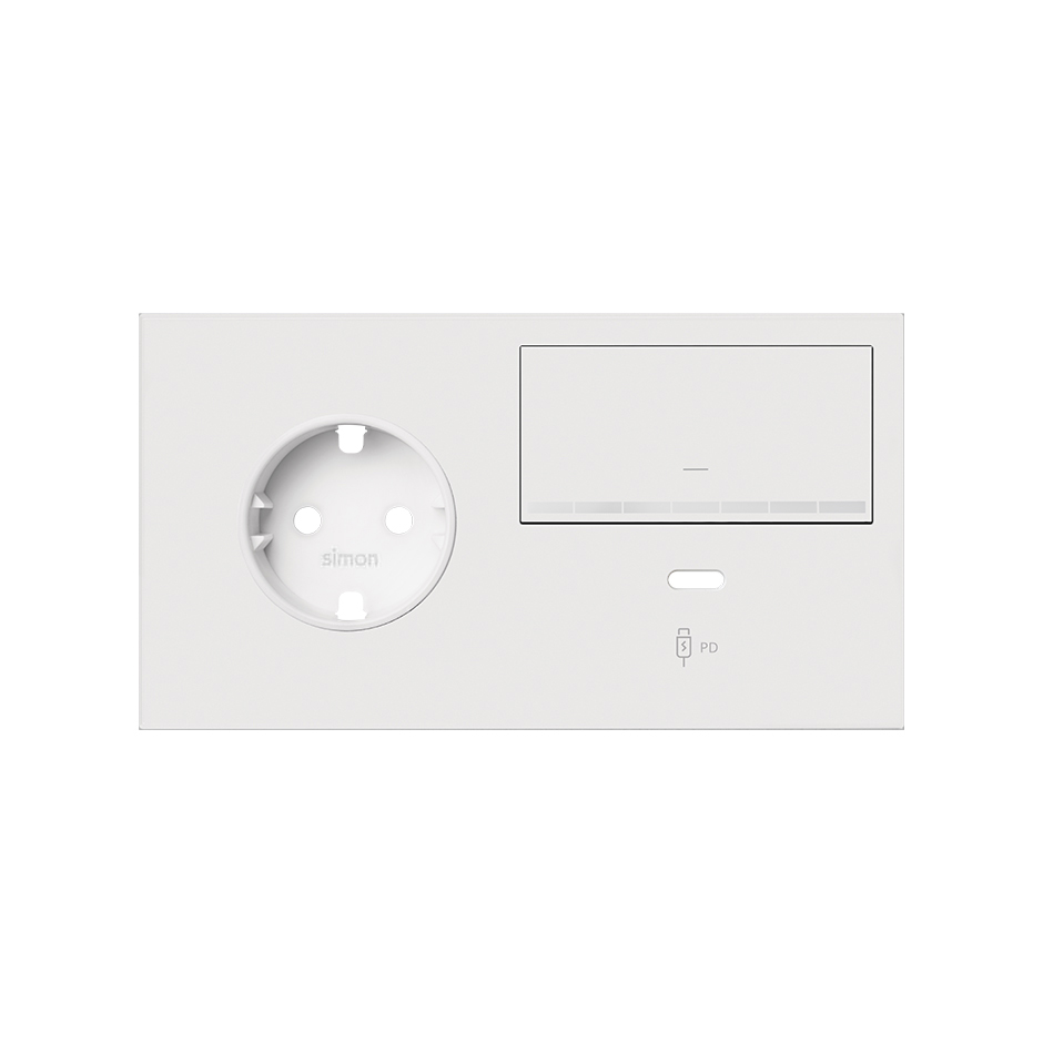 Simon 100 Белый матовый Кит 2 поста, фронт. Накладка на 1 роз.Schuko (прв) + 1 з/у USB C + 1 клав.светорег-ра, белый матовый