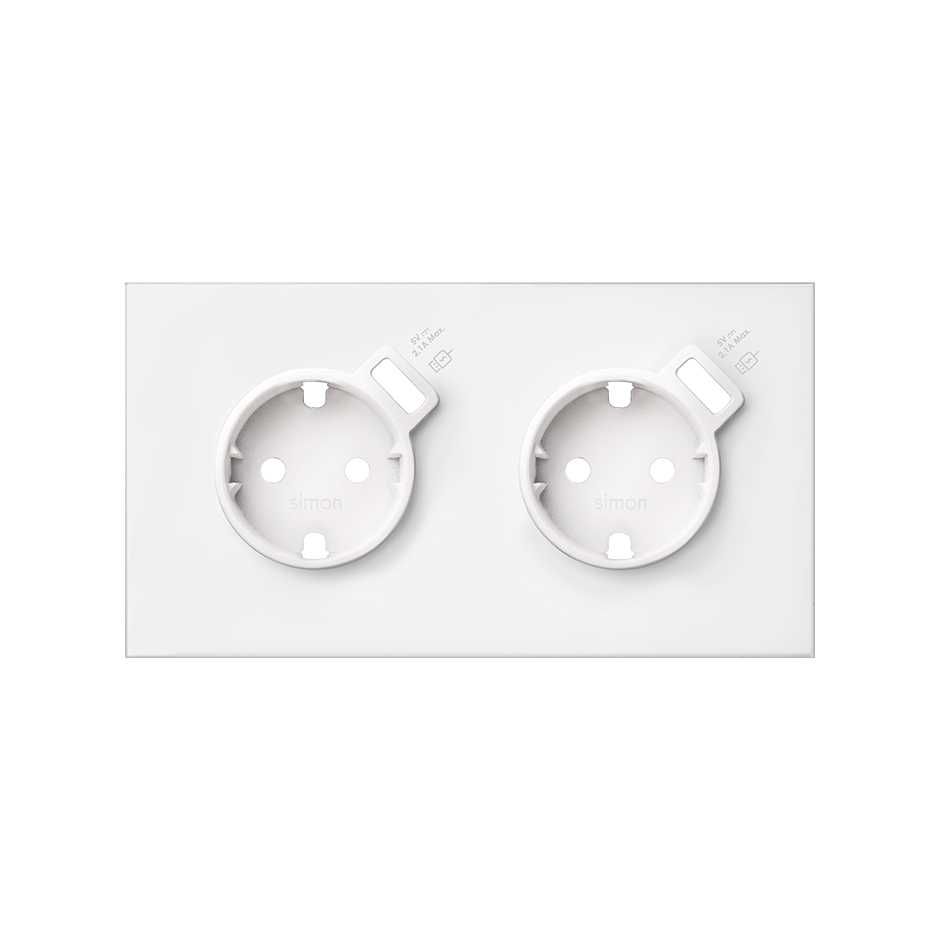 Simon 100 Белый матовый Кит 2 поста, фронт. Накладка на 2 розетки Schuko с з/у USB SC от производителя Simon. Артикул производителя 10020211-230.
