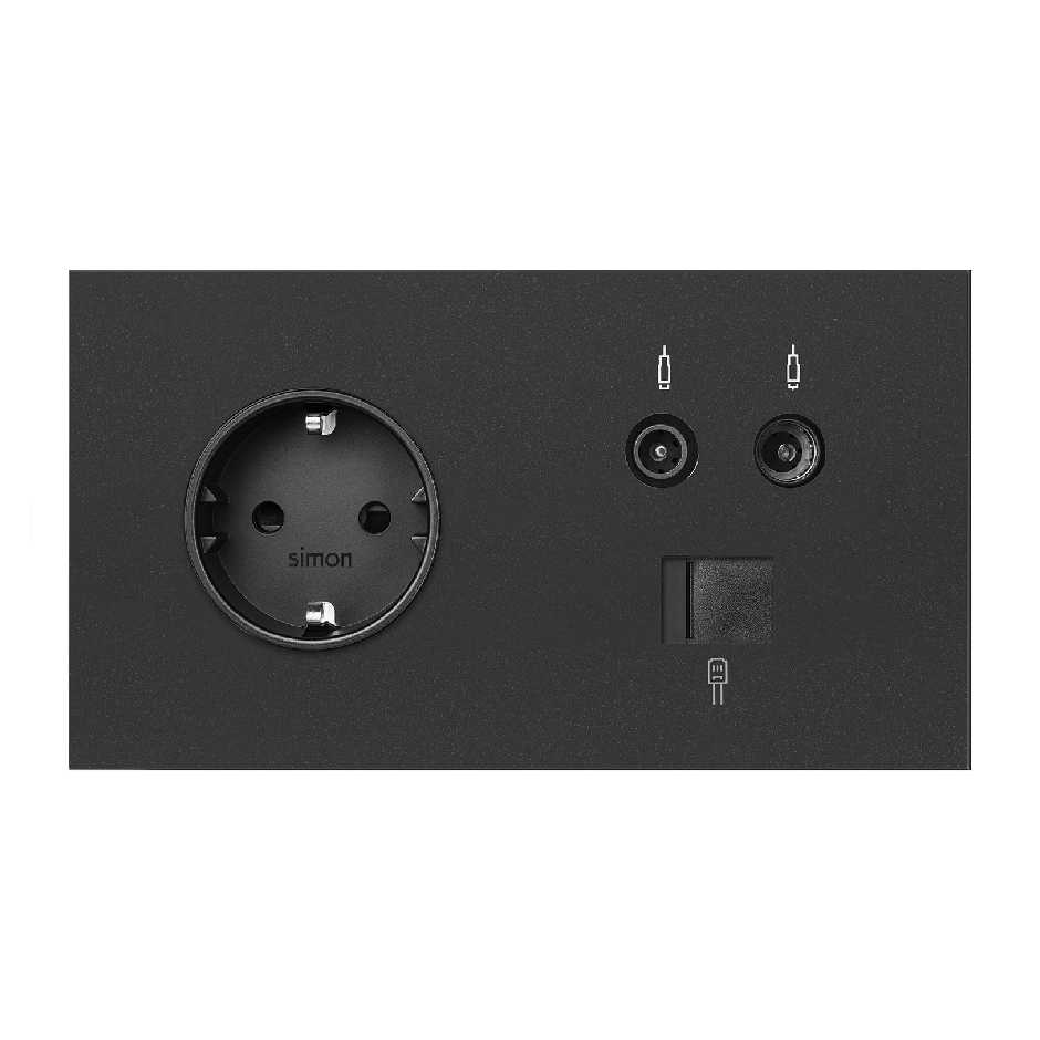 Simon 100 Черный матовый Кит 2 поста, фронт. Накладка на 1 розетку Schuko + 1 розетку TV + 1 розетку RJ45 от производителя Simon. Артикул производителя 10020208-238.