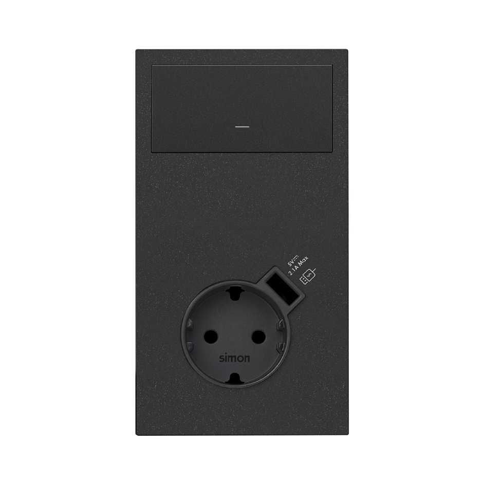 Simon 100 Черный матовый Кит 2 поста, фронт. Накладка вертикальная на 1 розетку Schuko с з/у USB SC + 1 клавиша выключателя от производителя Simon. Артикул производителя 10020216-238.