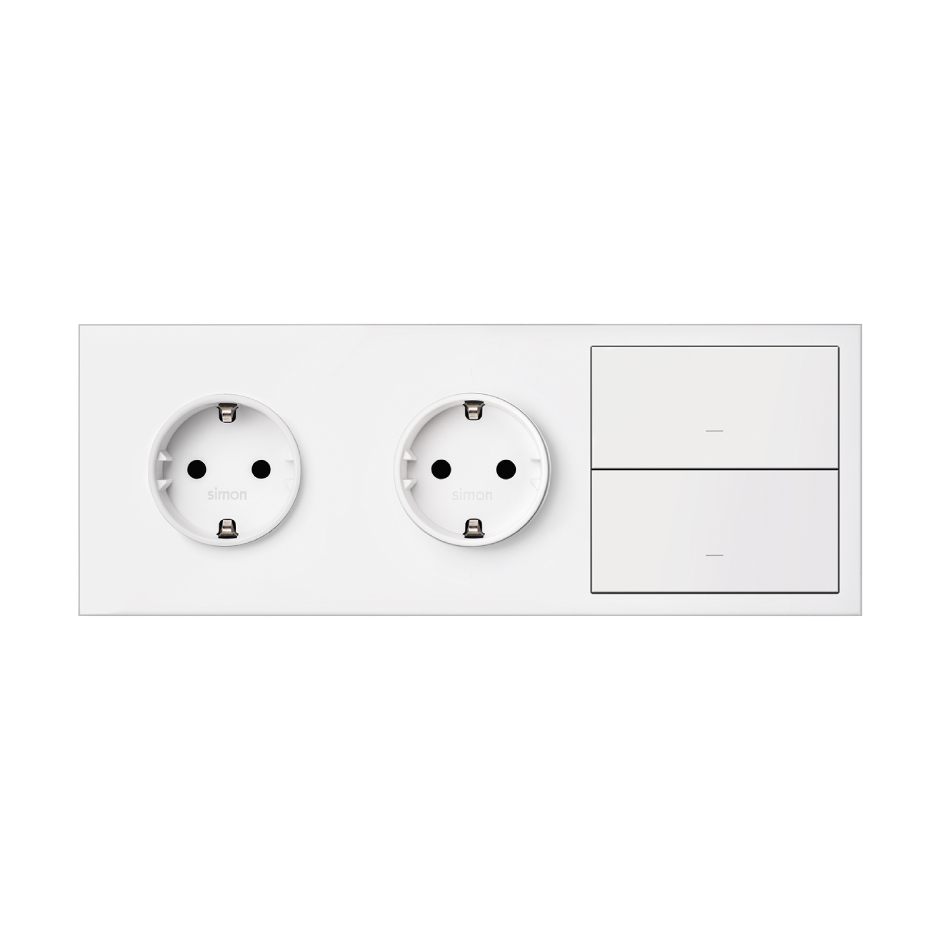 Simon 100 Черный матовый Кит 3 поста, фронт. Накладка на 2 розетки Schuko + 2 клавиши выключателей от производителя Simon. Артикул производителя 10020310-238.