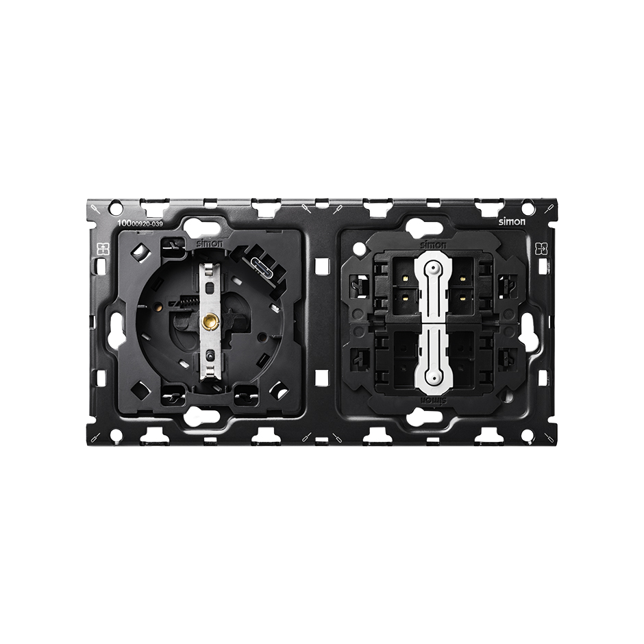 —Simon 100 Кит 2 поста, мех-мы. 1 роз.Schuko с з/у USB C + 2 перекл-ля + суппорт, арт 10010249-039
