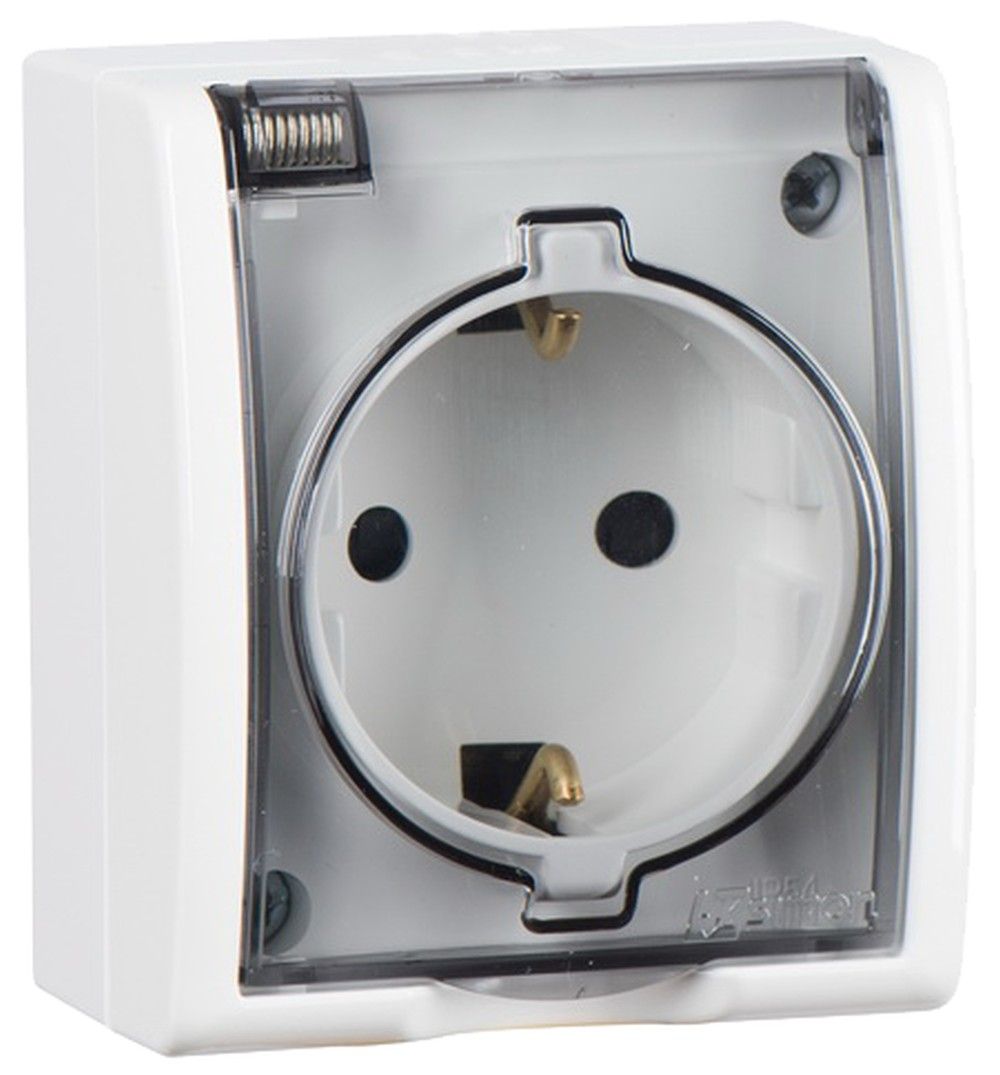 Simon 15 Aqua Белая Розетка 1-ая с/з с крышкой с защитными шторками наружная, IP54 от производителя Simon. Артикул производителя 1594432-030.