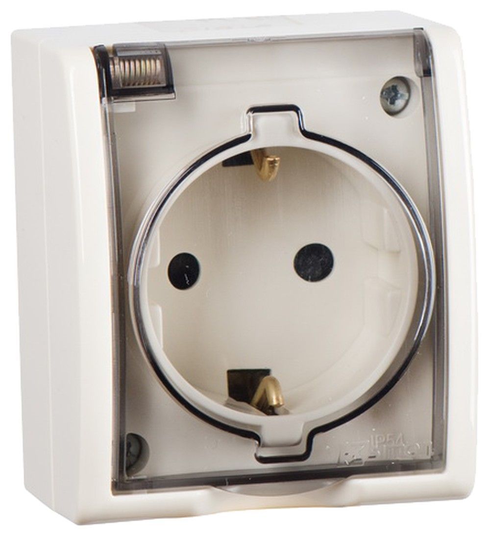 Simon 15 Aqua Бежевая Розетка 1-ая с/з с крышкой с защитными шторками наружная, IP54 от производителя Simon. Артикул производителя 1594432-031.