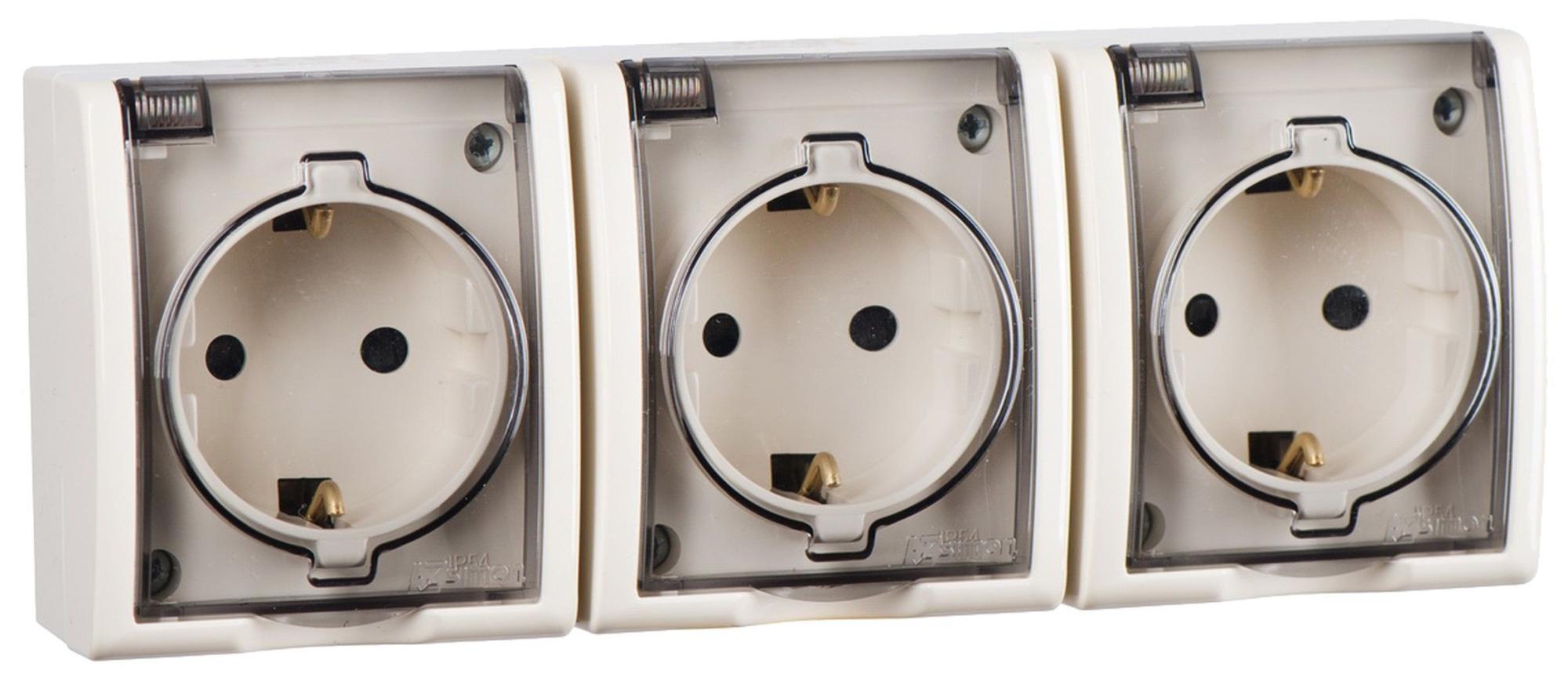 Simon 15 Aqua Бежевая Розетка 3-ая с/з с крышкой с защитными шторками наружная, IP54 от производителя Simon. Артикул производителя 1594447-031.