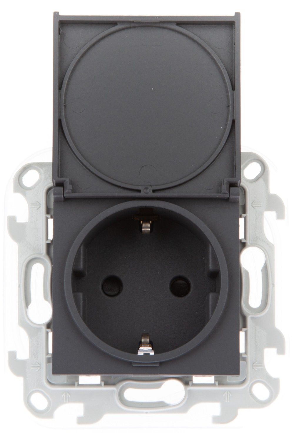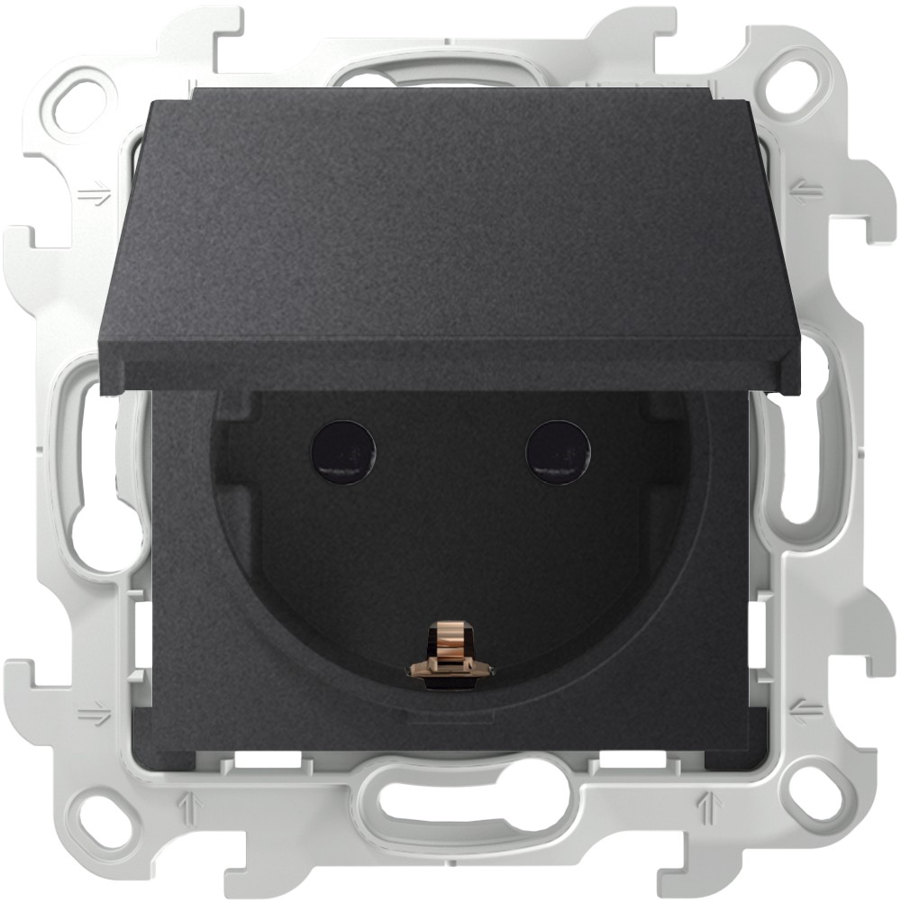 Simon 24 Графит Розетка 2К+3 Sсhuko IP44 c крышкой и защитными шторками от производителя Simon. Артикул производителя 2450448-038.