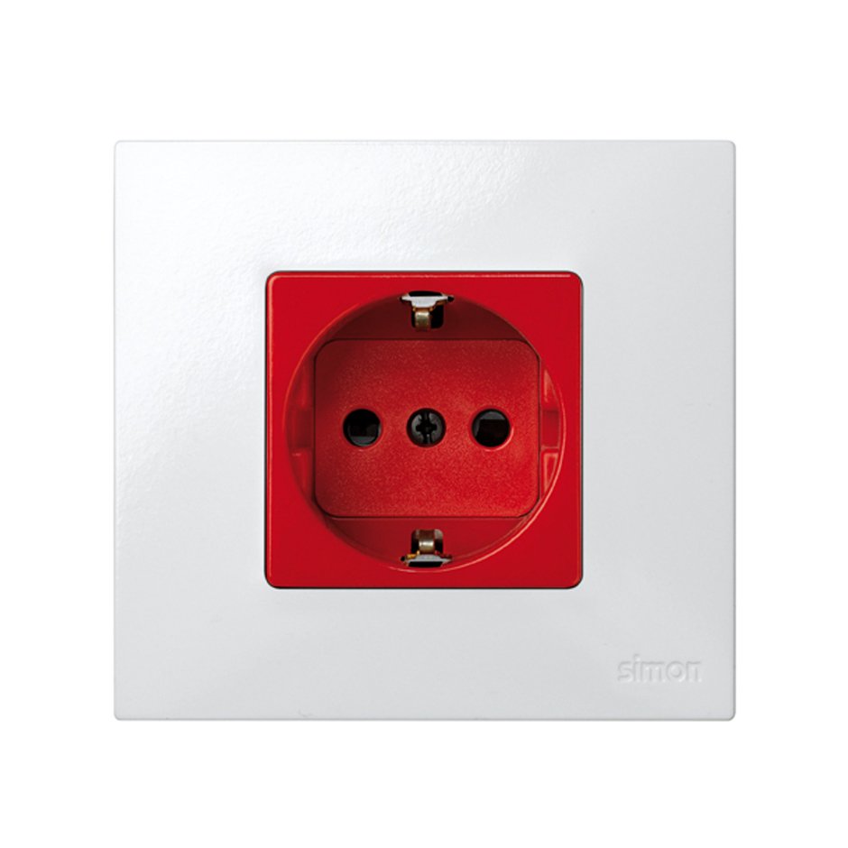Simon 27 Мех Красная Розетка 2P+E Schuko со шторками, безвинтовой зажим, 16А 250В от производителя Simon. Артикул производителя 27432-68.