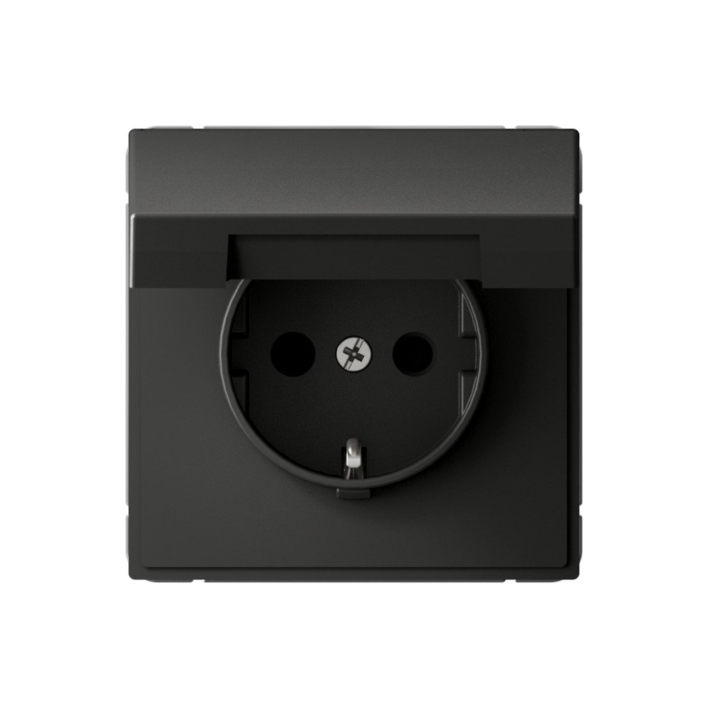 Механизм Systeme Electric серии ArtGallery в цвете базальт розетки одинарной с заземлением, шторками и крышкой подходит для сетей 250 В, на ток 16 А.