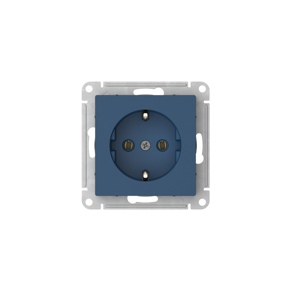 Механизм с быстрозажимными клеммами Systeme Electric (ранее Schneider Electric) серии AtlasDesign в цвете аквамарин розетки одинарной с заземлением, без шторок подходит для сетей 250 В, на ток 16 А. С помощью новых быстрозажимных клемм монтаж розеток и выключателей стал намного быстрее. Теперь подключение не требует использования отвертки.