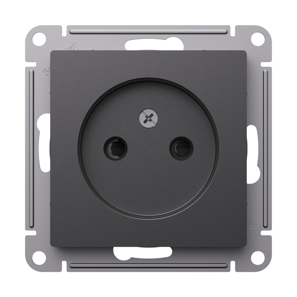 Механизм Systeme Electric (ранее Schneider Electric) серии AtlasDesign в цвете БАЗАЛЬТ розетки одинарной без заземления со шторками подходит для сетей 250 В, на ток 16 А.